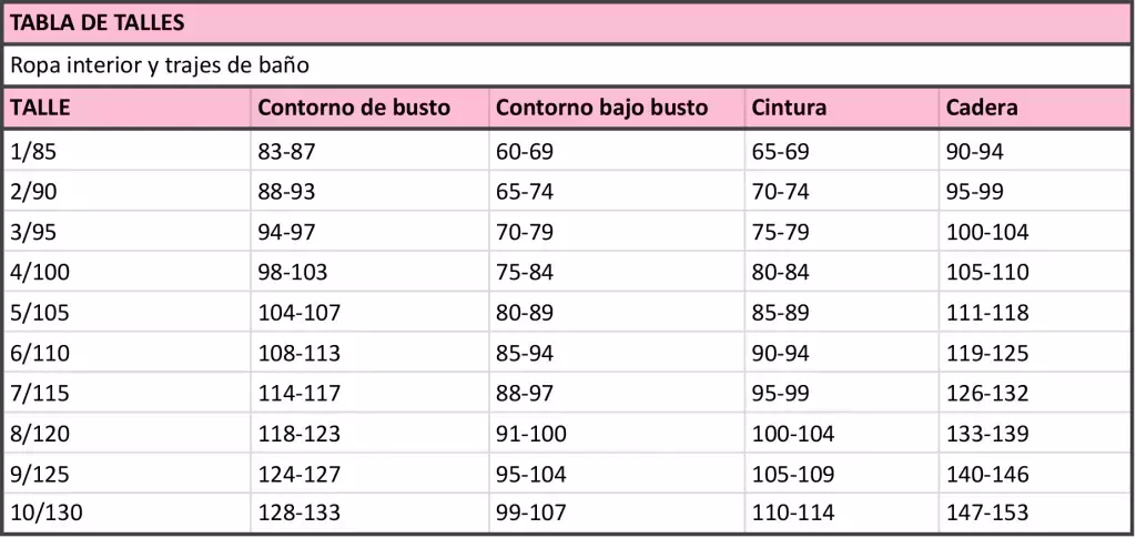 Si estás entre dos talles, elegí el más chico ya que esta bombacha está confeccionada en un material que cede.