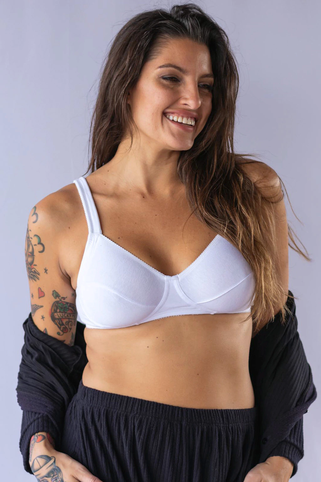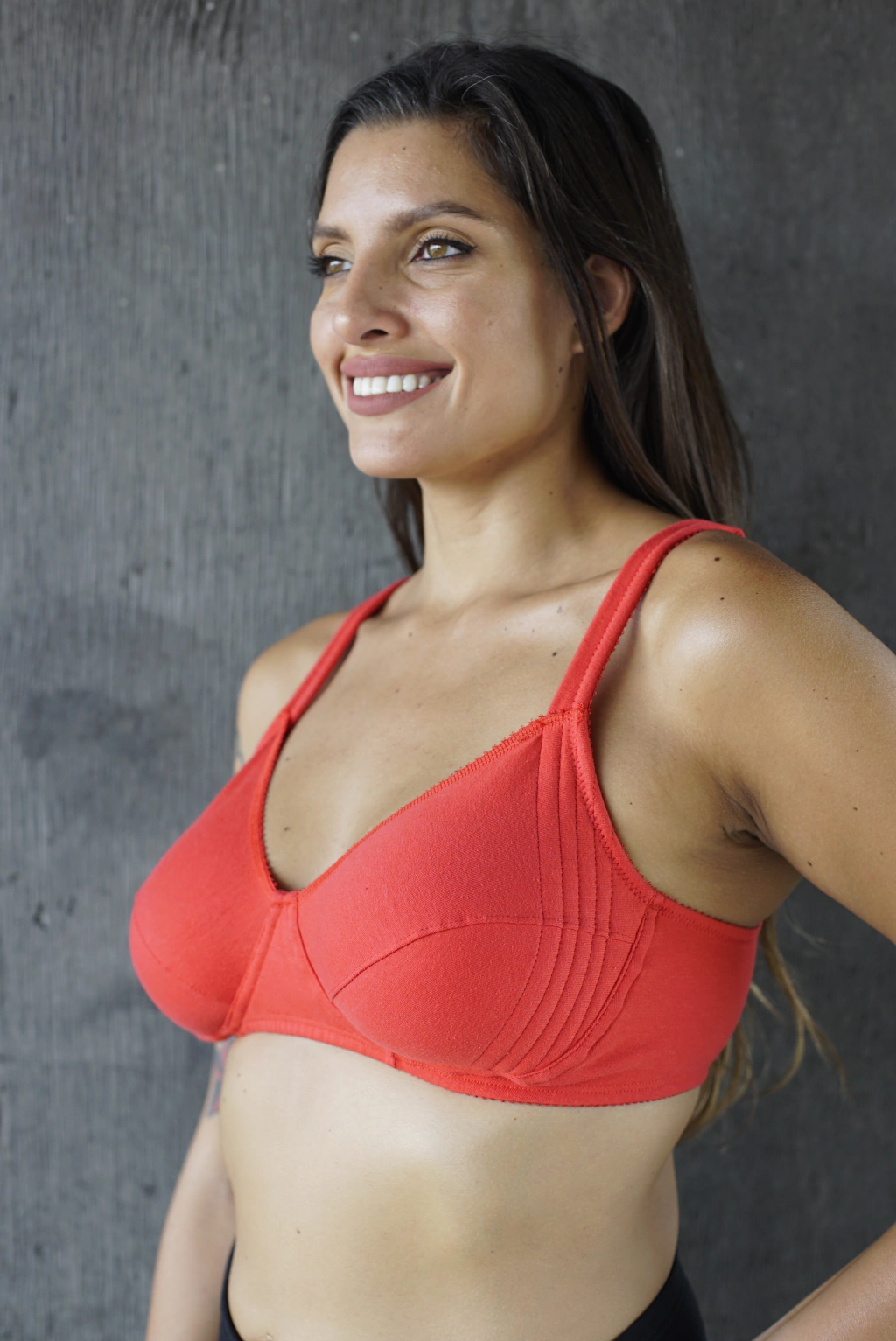Este corpiño sin aro está confeccionado en algodón con tazas y breteles reforzados. Aporta contención real y moldea sin apretar, ideal para talles grandes. Es MUY cómodo.
