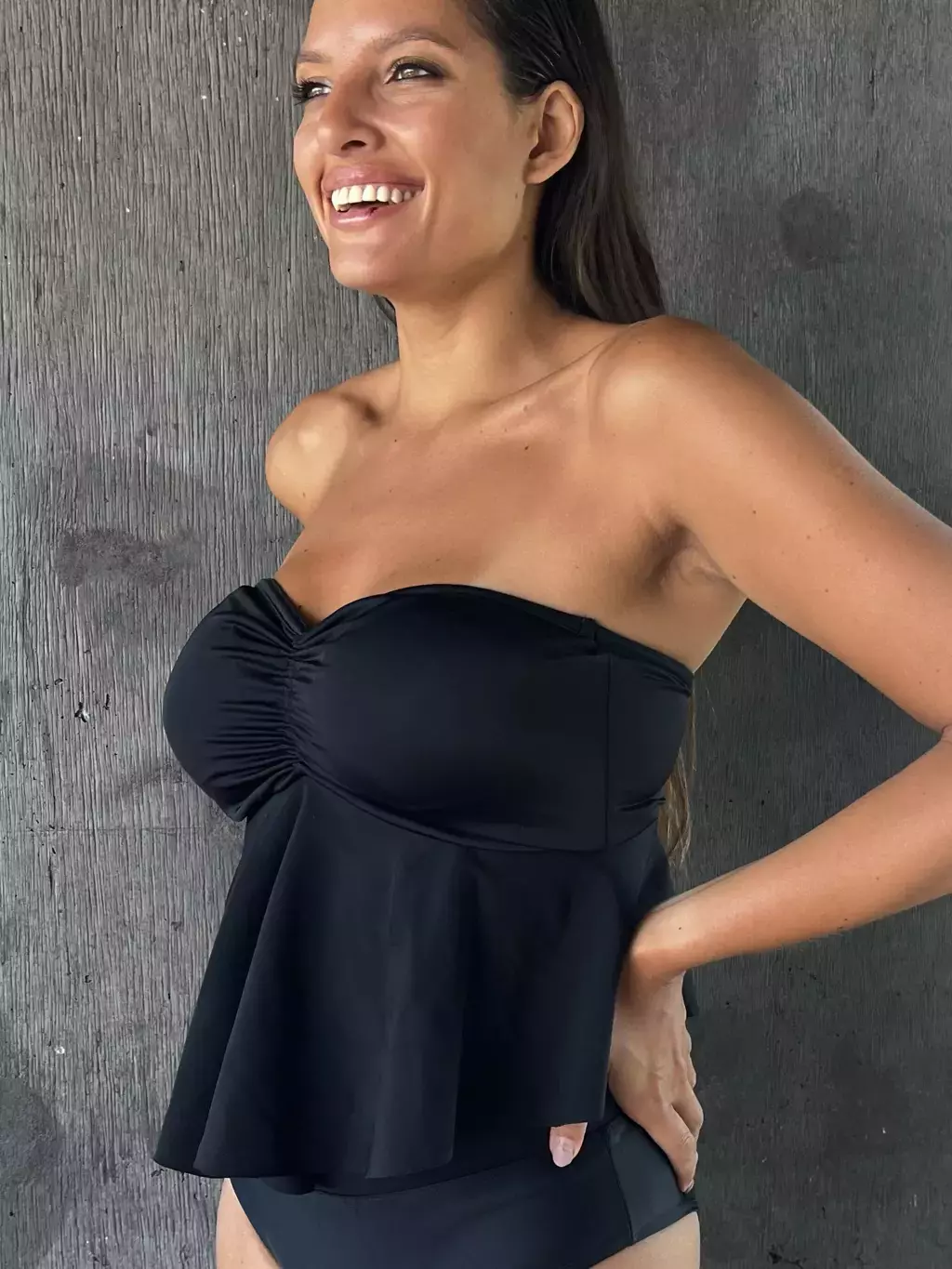 Tankini premium con top armado de tricot de lycra forrado con taza soft interna, ballenas laterales. Multiposiciones, se puede usar como top o como tankini. Confeccionado en tricot de lycra grueso