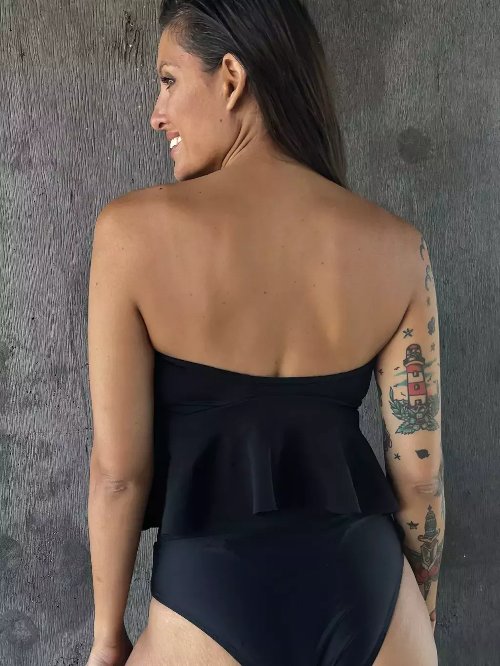 Tankini con top armado de tricot de lycra forrado con taza soft interna, ballenas laterales. Multiposiciones, se puede usar como top o como tankini. Confeccionado en tricot de lycra grueso y la bombacha cintura modeladora está confeccionada en tricot de lycra. La cintura doble asegura una mayor sujeción en toda la zona abdominal, cadera y cintura, modelando y reduciendo sin marcar.