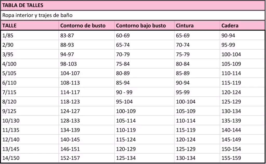 Si estás entre dos talles, elegí el más chico ya que esta bombacha está confeccionada en un material que cede.