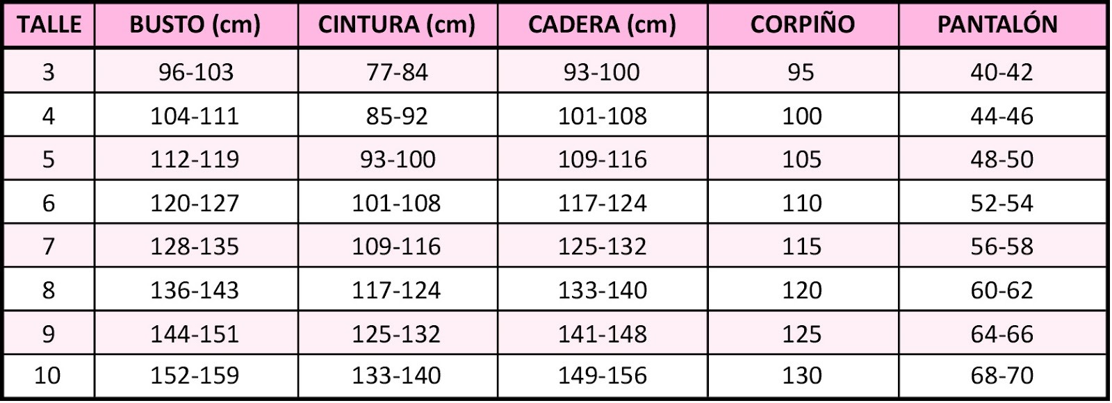 Guía de talles: